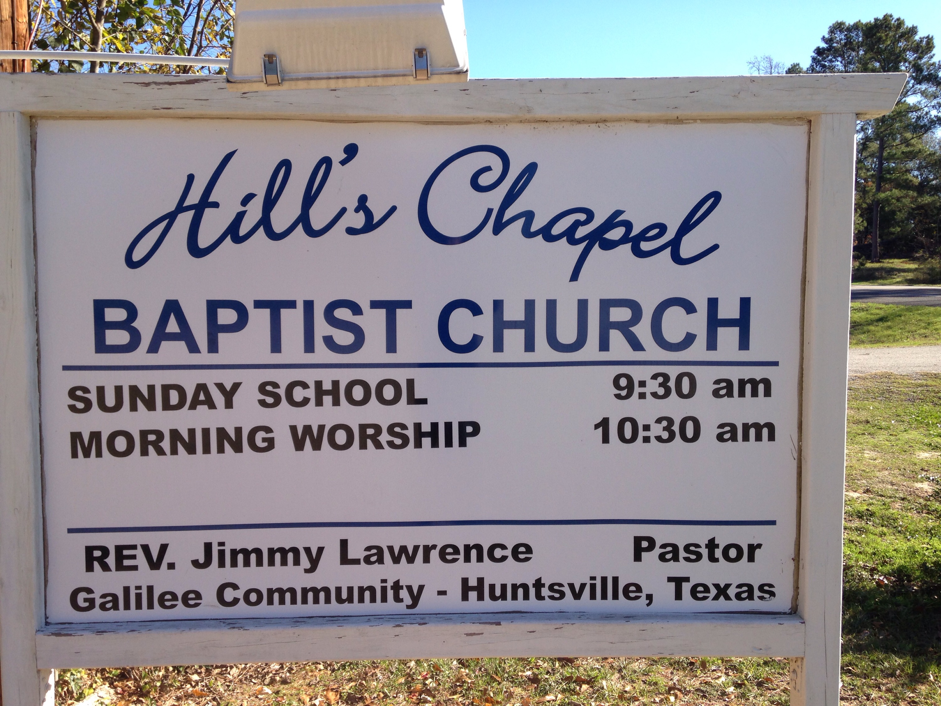 On our way into Huntsville, Texas to visit with Warden Jim, we came upon a small Baptist Church on the left side of the road.